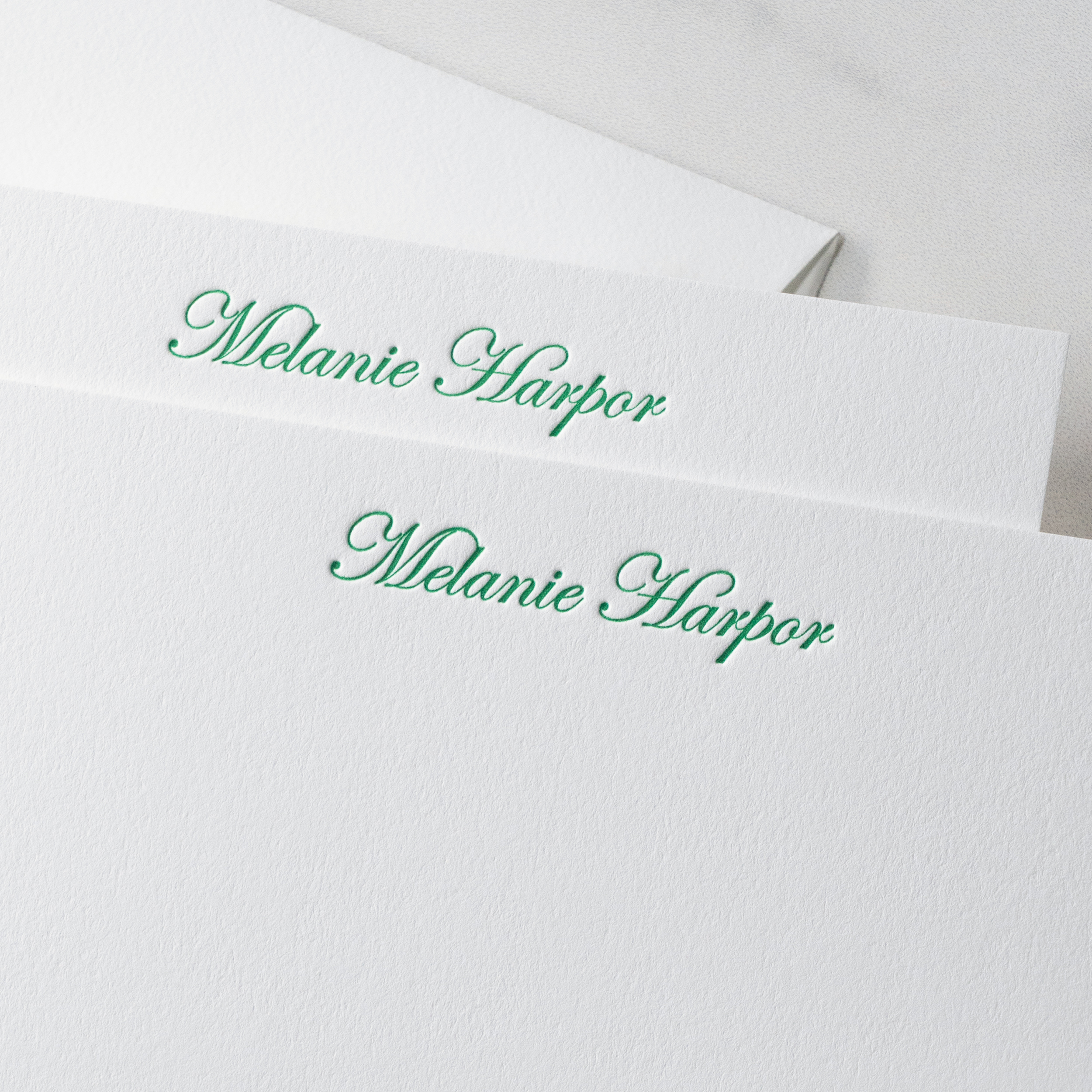 A classic personalized letterpress note card that combines traditional script lettering with modern craftsmanship.