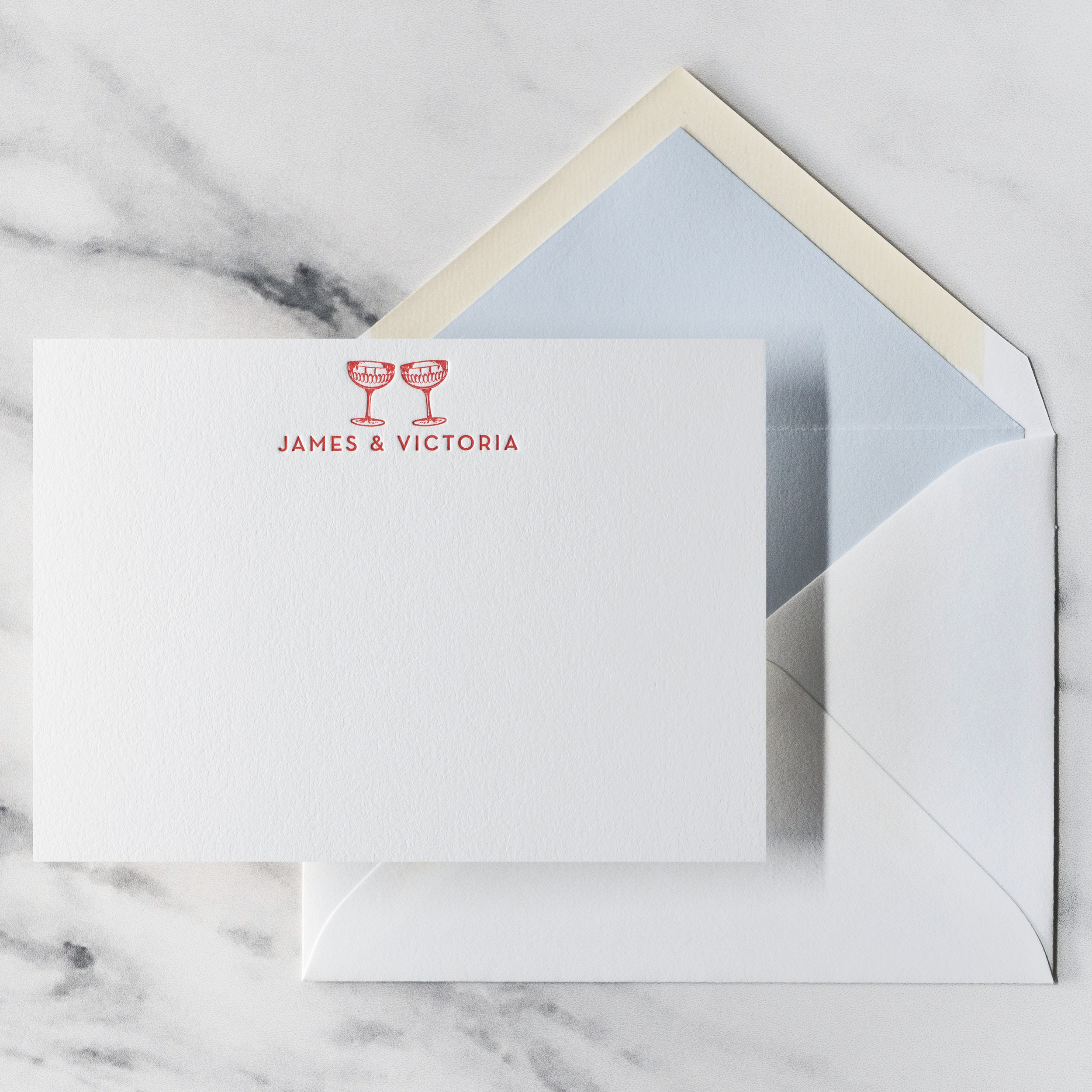 A personalized letterpress note card that highlights a unique motif for a distinctive, modern look.